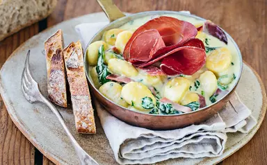 - Ajouter la crème fraîche et continuer de remuer. Saler et poivrer.